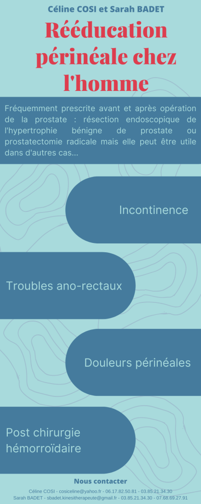 Cabinet de kinésithérapie spécialisé dans la rééducation du périnée depuis plusieurs années, pour tous les patients et à tout âge de la vie.